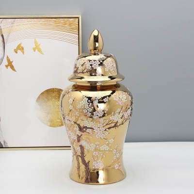 ASPIRE DESIGNS Gold Ginger Jar/White with Lid/Ceramic VASE or Flower vase for Home Decor (Gold Floral Design )