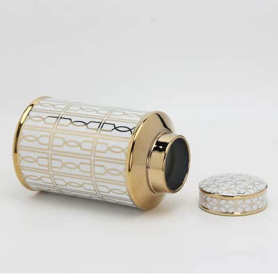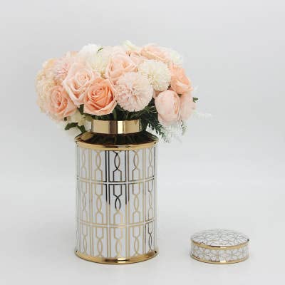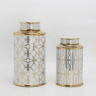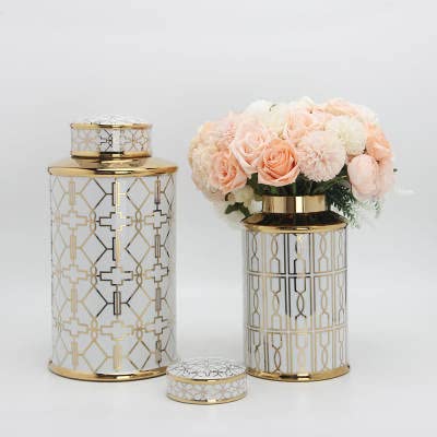 ASPIRE DESIGNS Gold Ginger Jar/White with Lid/Ceramic VASE / Canister set or Flower vase Set of 2 for Home Decor (Gold/White)