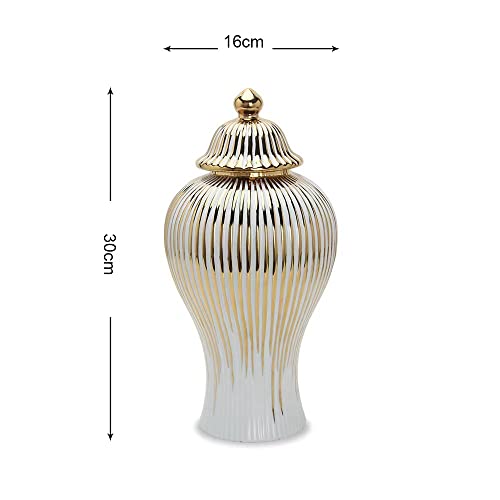 ASPIRE DESIGNS Gold/White Ginger Jar with Lid/Ceramic or Flower vase for Home Decor- Gold