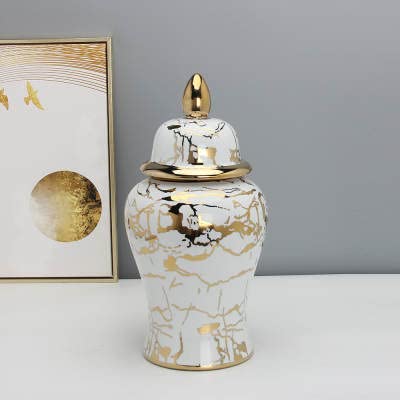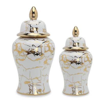 ASPIRE DESIGNS Gold/White Ginger Jar with Lid / Ceramic VASE or Flower vase for Home Decor- Gold (Gold & White Marble Design )
