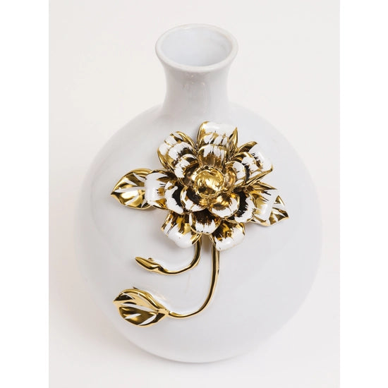 White Ceramic Vase Gold Floral Detail