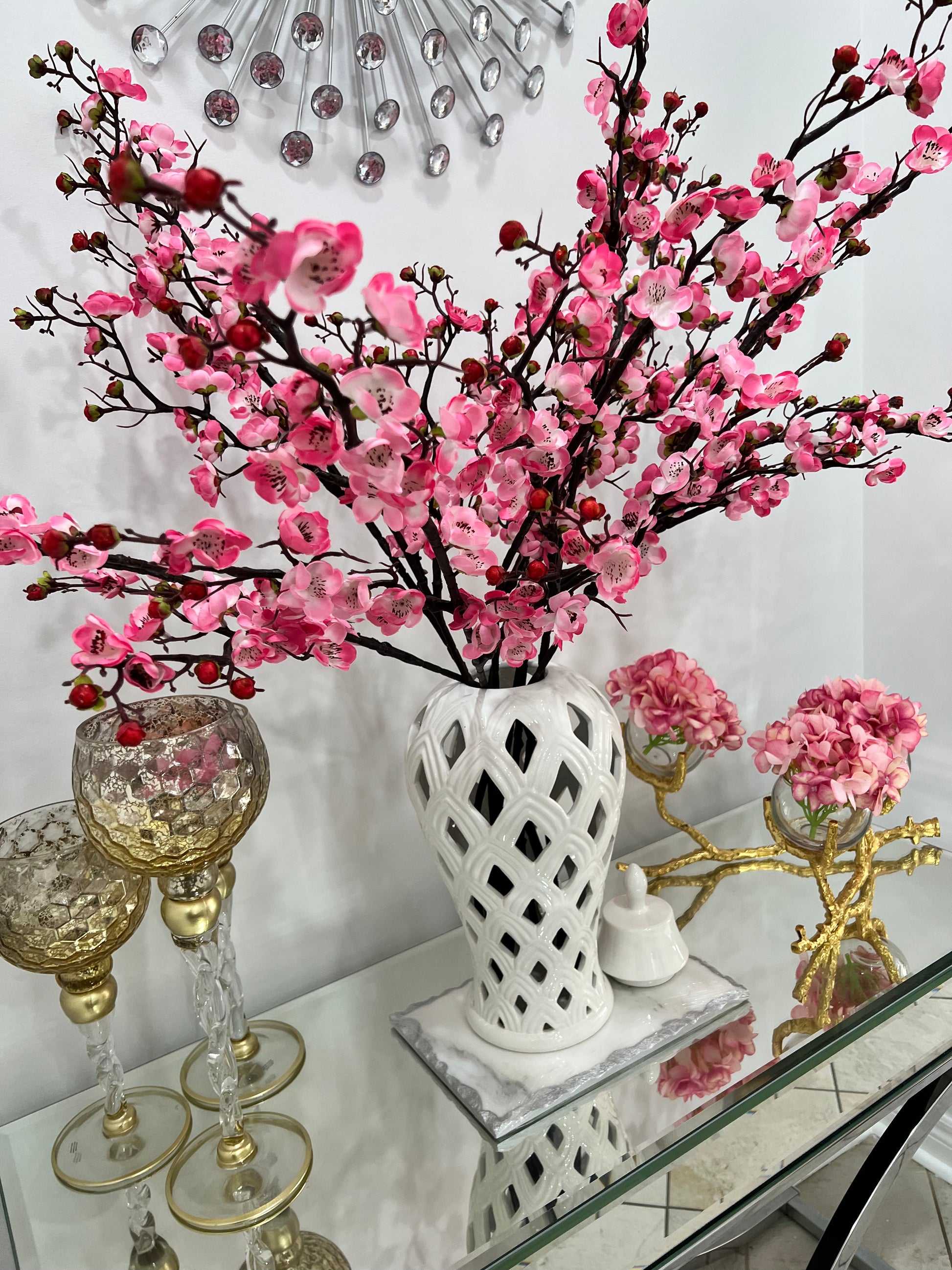 Decorate your fireplace or console tabletop with this stunning temple jar. A clover cut out temple jar design with a glossy finish. An elegant way to enhance your home interior and bring neutral colours into any room.
